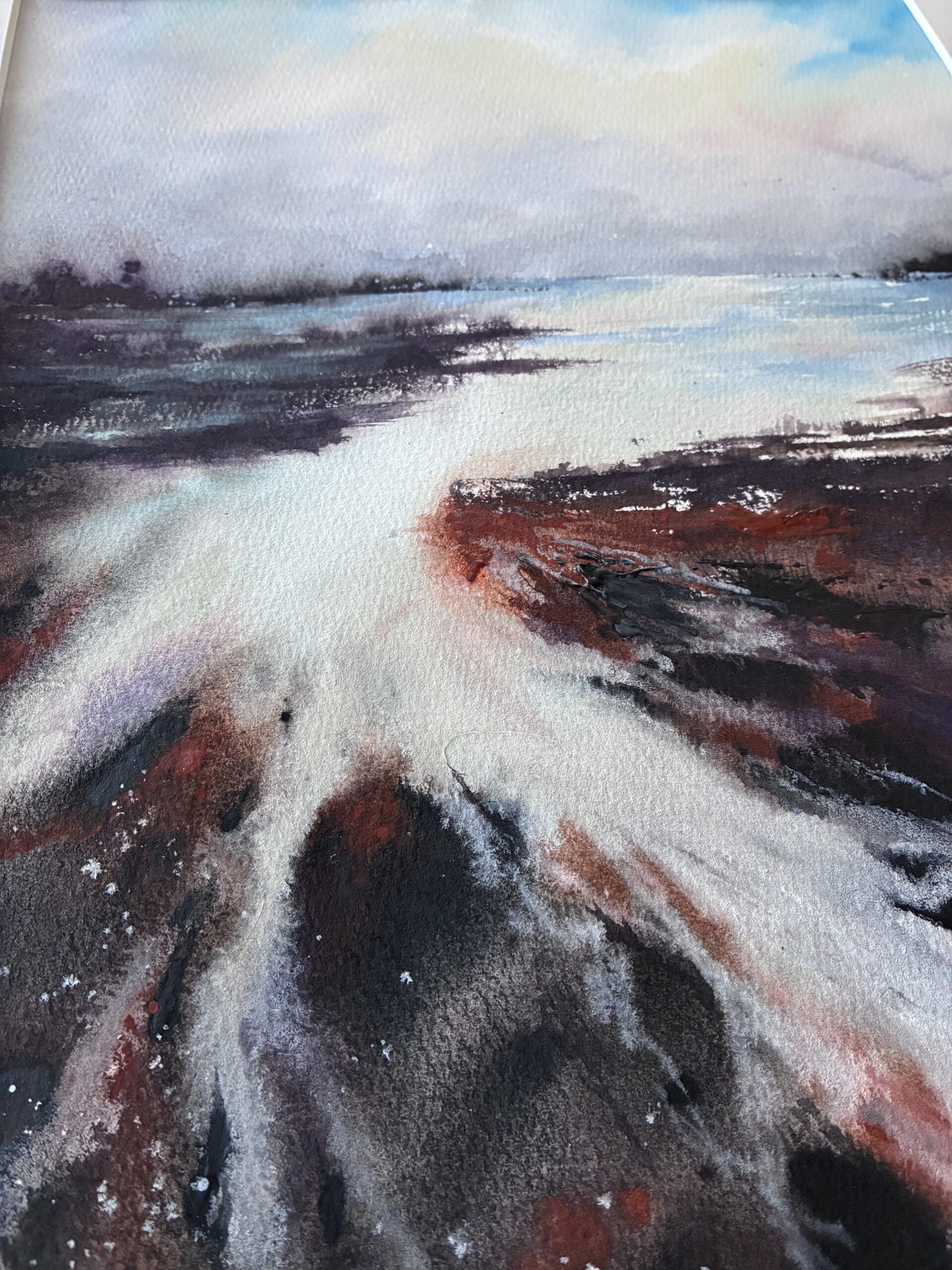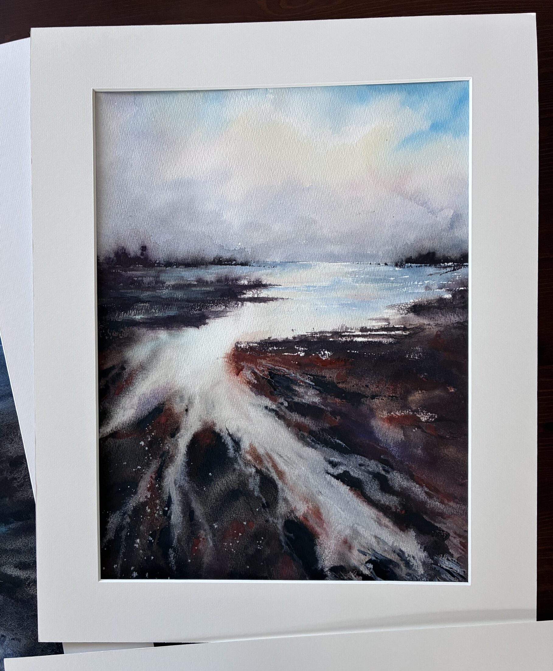 Seria akwarel eterycznych pejzaży w których główną rolę gra naturalna granulacja i osad pigmentu. Surowe kompozycje budowane światłem i unikalną teksturą, idealne do nowoczesnych minimalistycznych wnętrz.